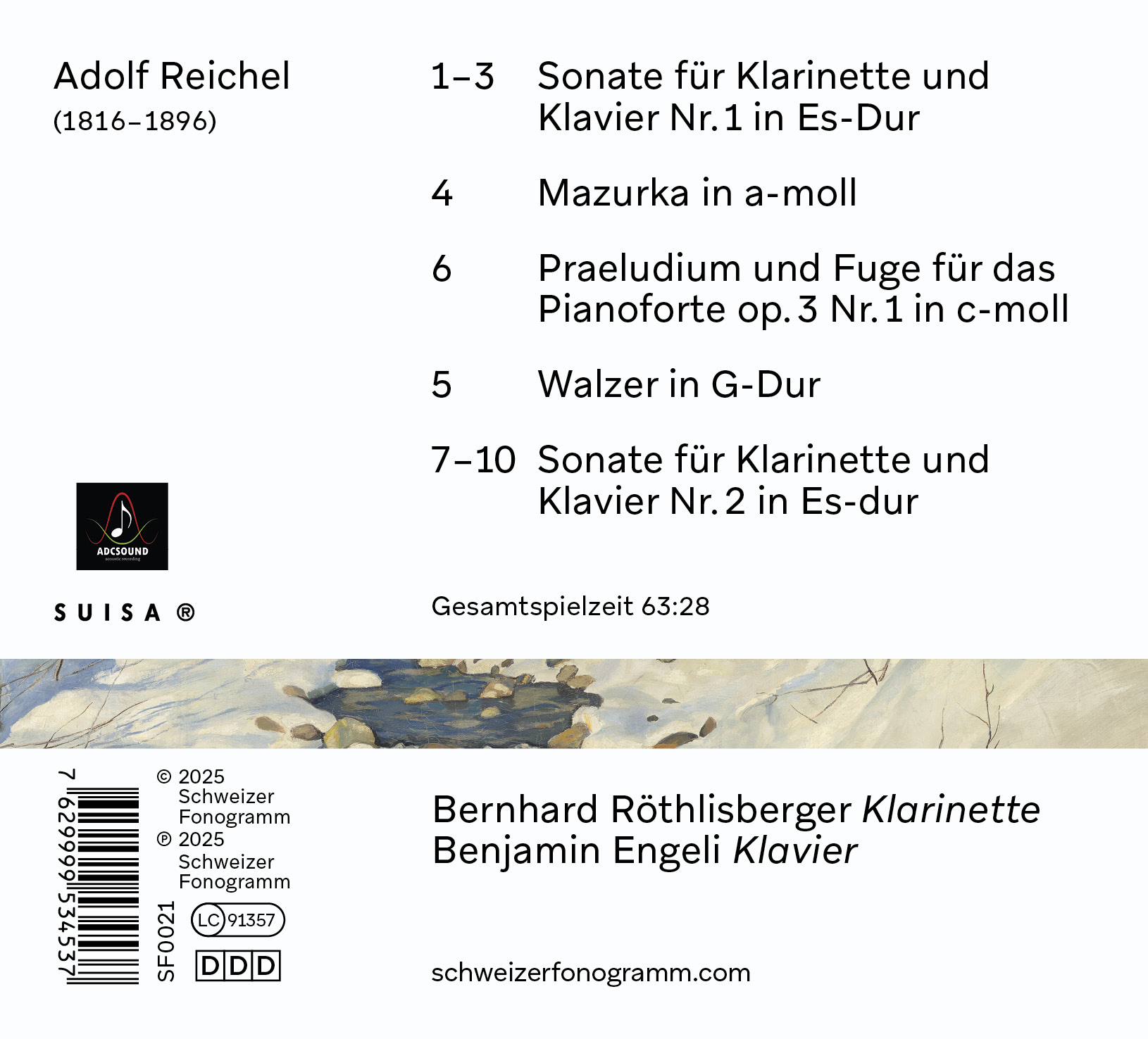 Adolf Reichel war im Berner Musikleben eine zentrale Figur. Bis 1884/1888 war er Leiter des Berner Symphonieorchesters, der Musikschule der Bernischen Musikgesellschaft (BMG) und des Chors des Cäcilienvereins. Seine beiden Sonaten, in der Tonsprache Schuberts gehalten, faszinieren mit Kunstfertigkeit und Einfallsreichtum.